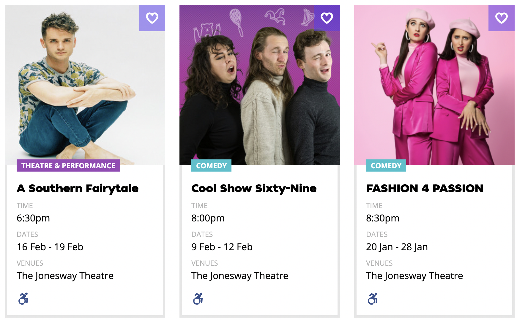 Back to All Events Fringe Festival Monday 16 January 2023 8:30 pm Sunday 19 February 2023 9:30 pm Google Calendar ICS Checkout The Jonesway Fringe Festival Lineup! Visit Fringe World for bookings